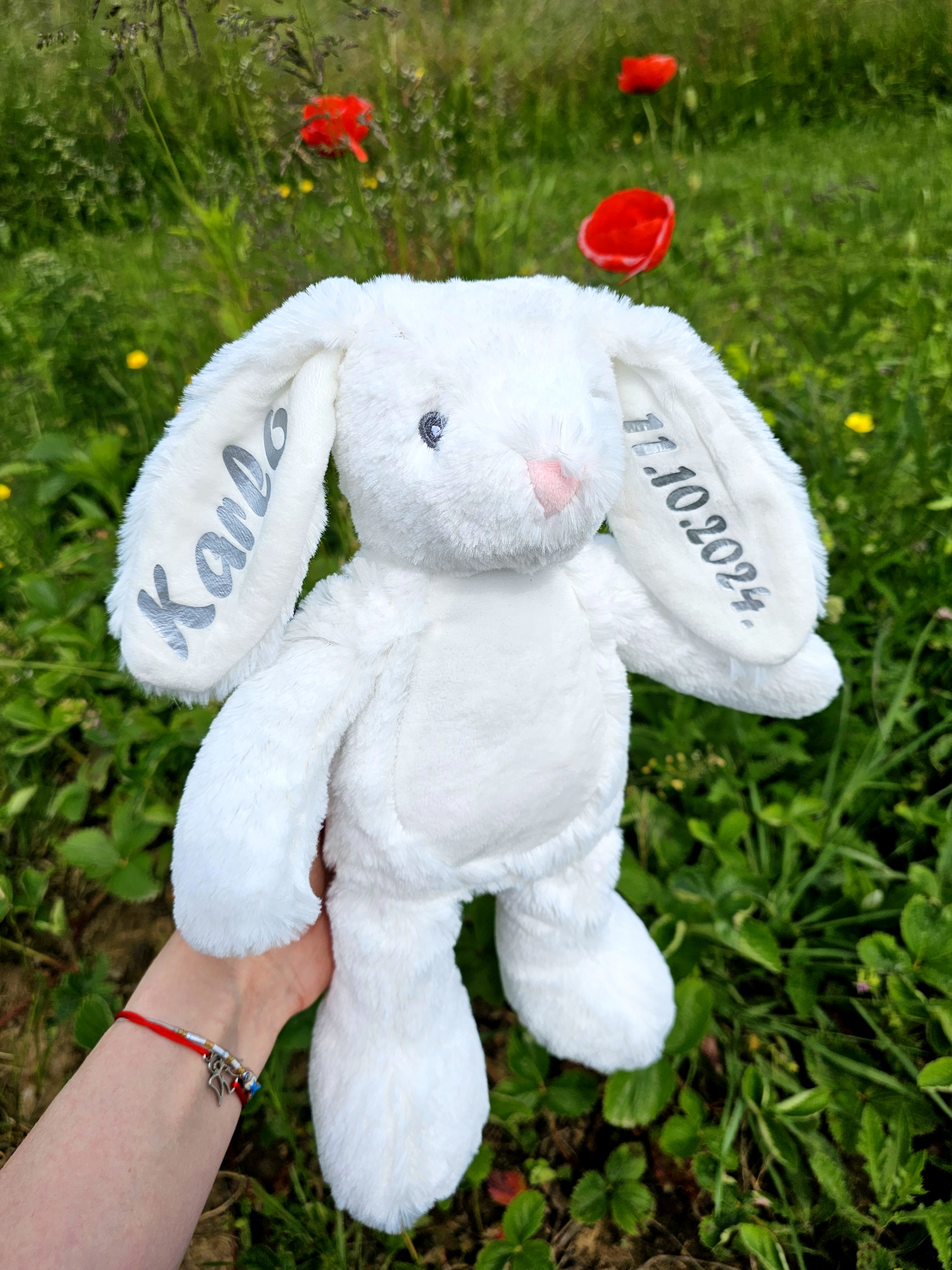 Plišani zeko sa tiskom, možete staviti ime i datum.