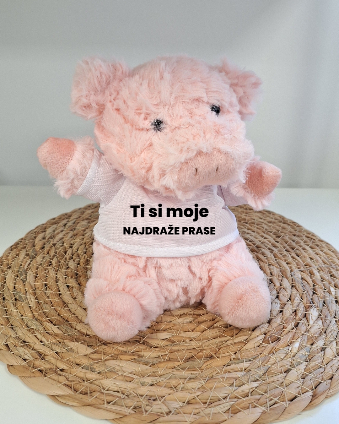 Zahvaljujući mogućnosti personalizacije, plišano prase postaje jedinstvena uspomena i emotivan poklon za rođendane, krštenja, godišnjice, Valentinovo, rođenje djeteta ili kao znak pažnje dragoj osobi. Mekani pliš ugodan je na dodir, dok kvalitetan tisak na majici osigurava postojanost i uredan izgled.