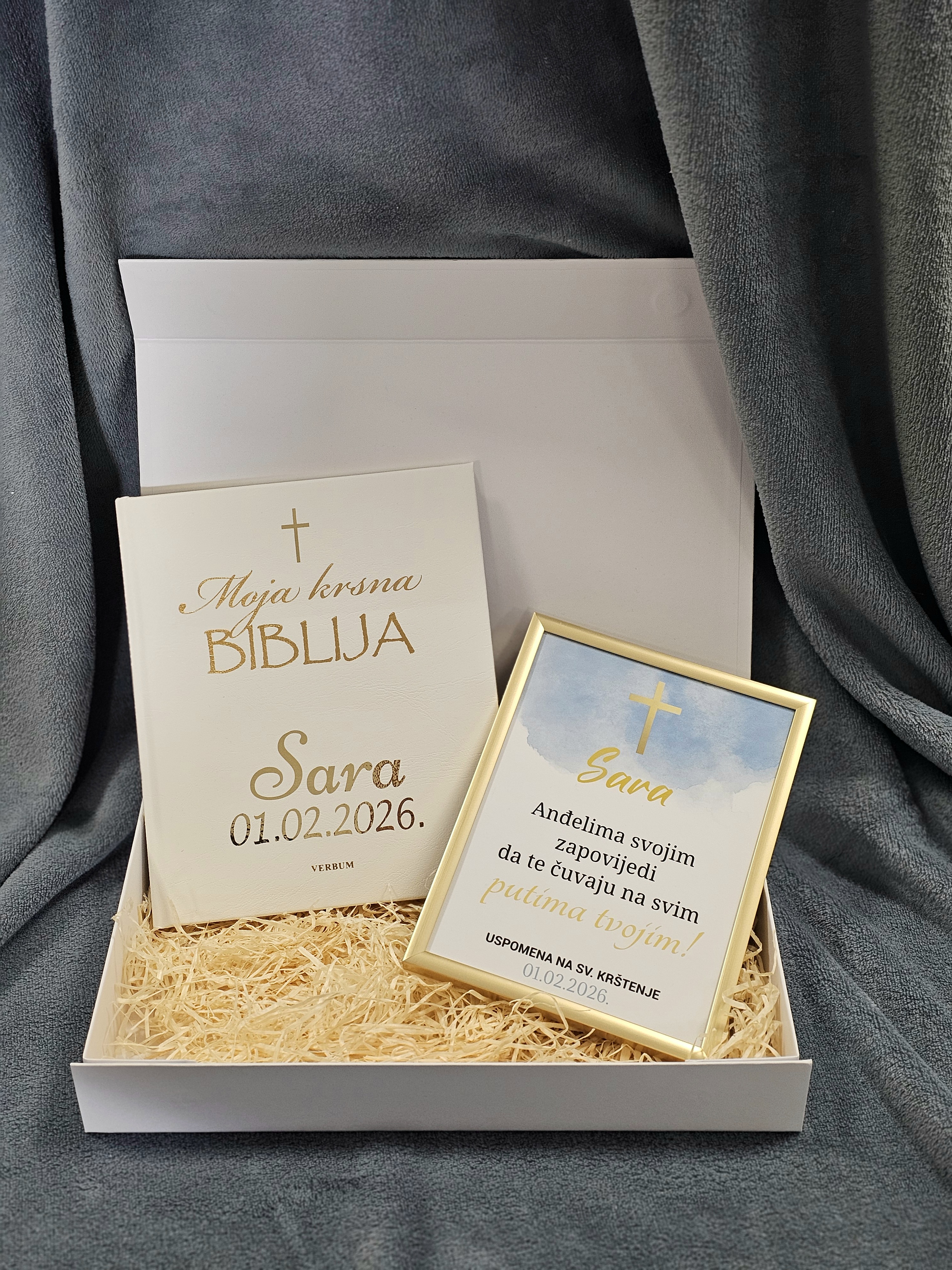 Ovaj nježni i elegantni set za krštenje pažljivo je osmišljen kako bi ostao trajna uspomena na jedan od najvažnijih dana u životu djeteta.